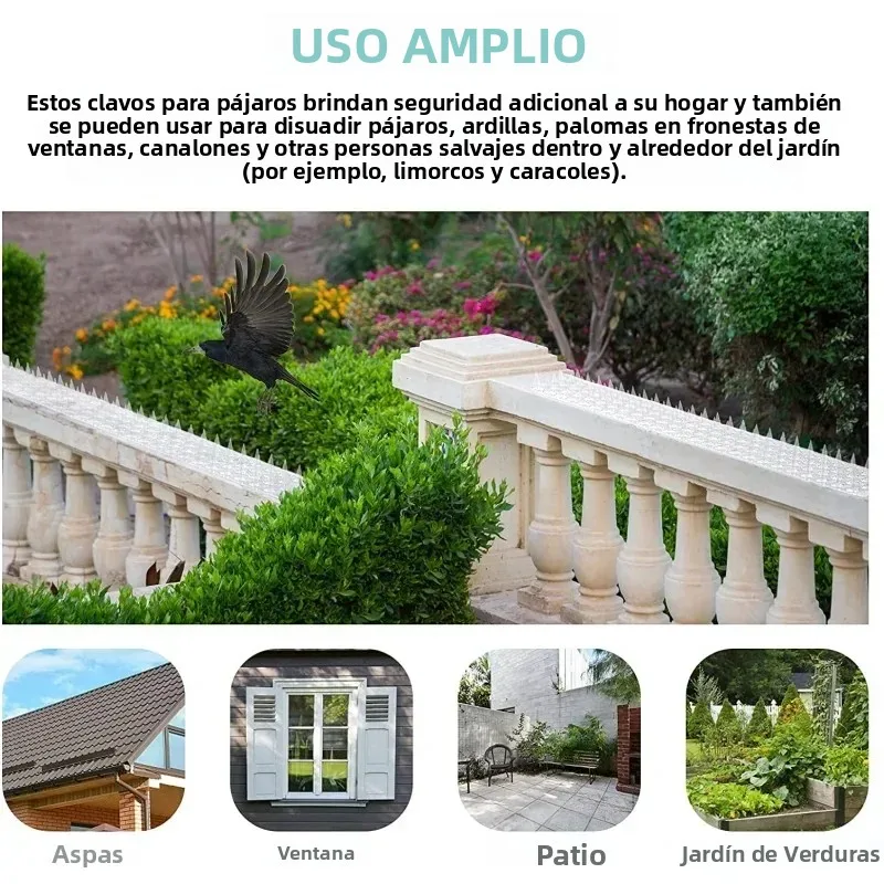 Repelente de Pájaros de Plástico, Repelente de Gatos, Anti-palomas, Anti-pájaros, Anti-ardillas, para Cercas de Jardín, Control de Plagas, Púas Transparentes