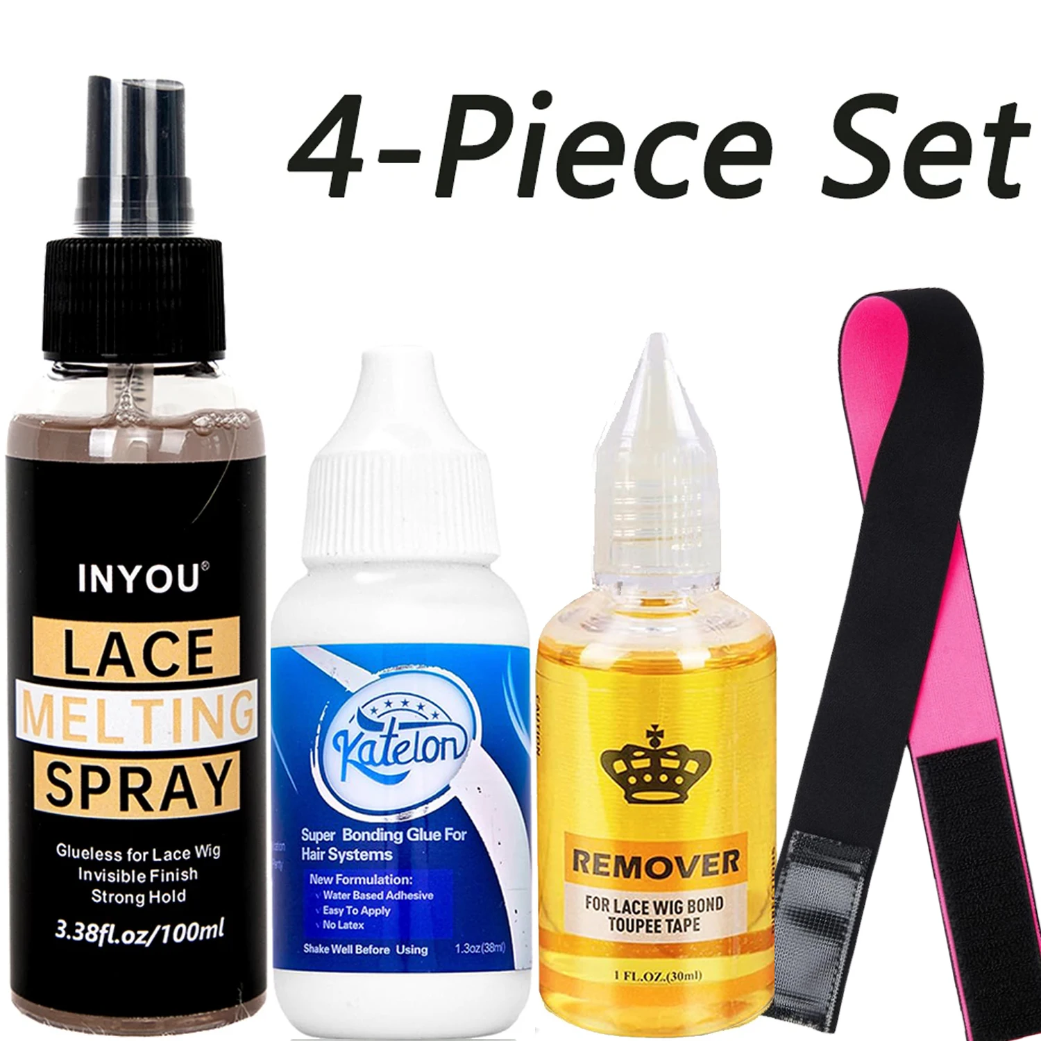 LOCKMIO Spray de fusión pegamento de encaje resistente al agua removedor de pegamento adhesivo y cepillo banda para la cabeza Kit de instalación de peluca para pelucas de encaje para mujeres