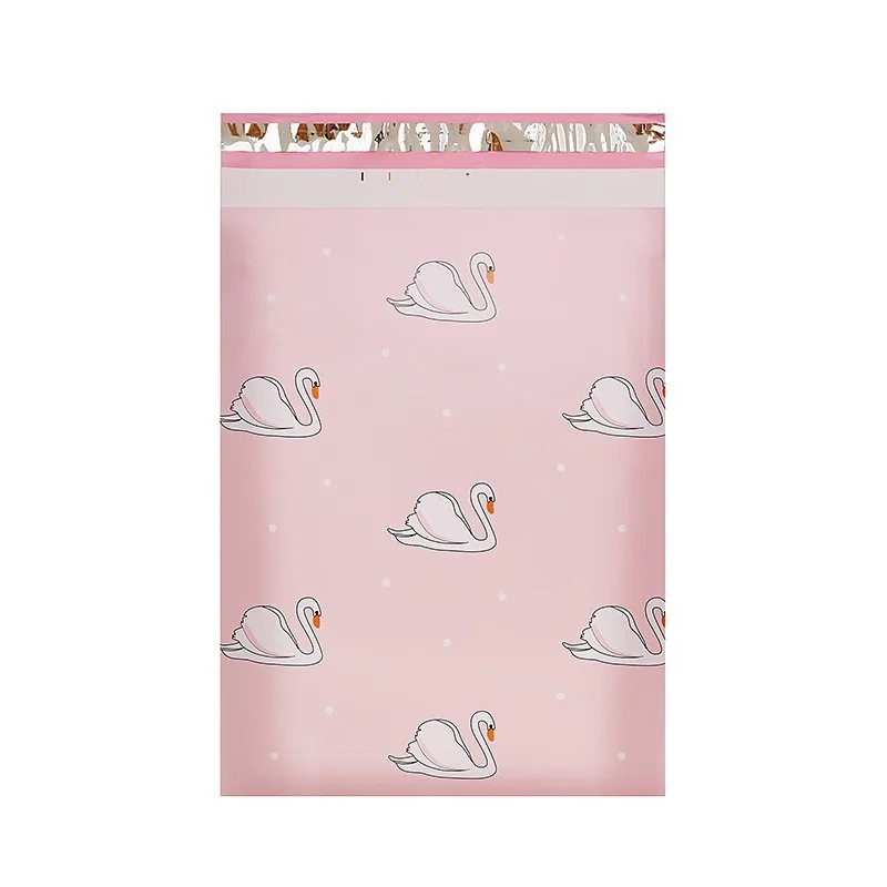 50 Sobres de Polietileno con Diseño de Cisne Rosa, Autosellables e Impermeables, para Envíos de Pequeños Negocios, Boutiques de Ropa y Embalaje