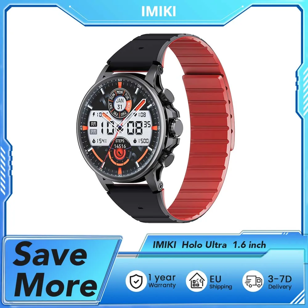 Reloj Inteligente IMIKI Holo Ultra, AMOLED de 1.6 Pulgadas, Más de 100 Modos Deportivos, IP68, Monitor de Salud y Sueño, Llamadas por Bluetooth, Más de 100 Carátulas