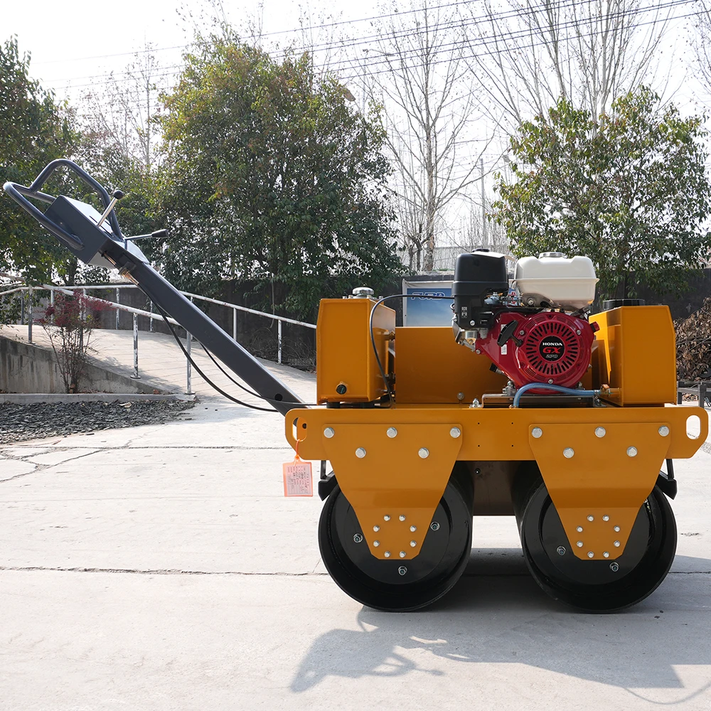 Nuevo tipo de rodillo de asfalto, rodillo vibratorio manual de doble tambor de acero de 0.6 toneladas