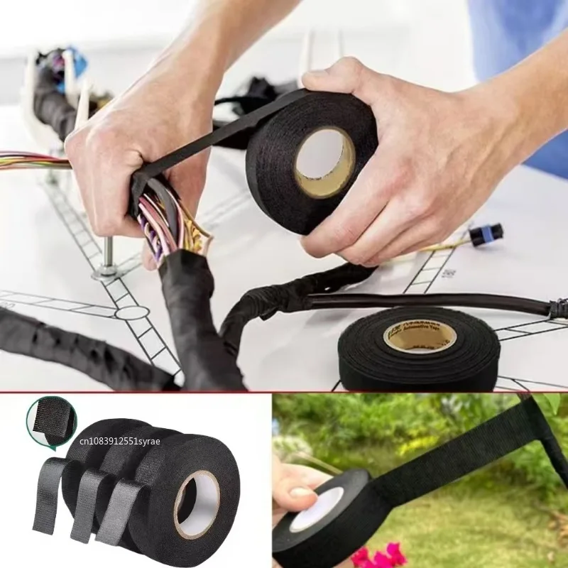 Arnés de cables de 15 metros, cinta adhesiva de tela automotriz, cinta eléctrica de tela a prueba de calor de alta resistencia al ruido para envolver cableado