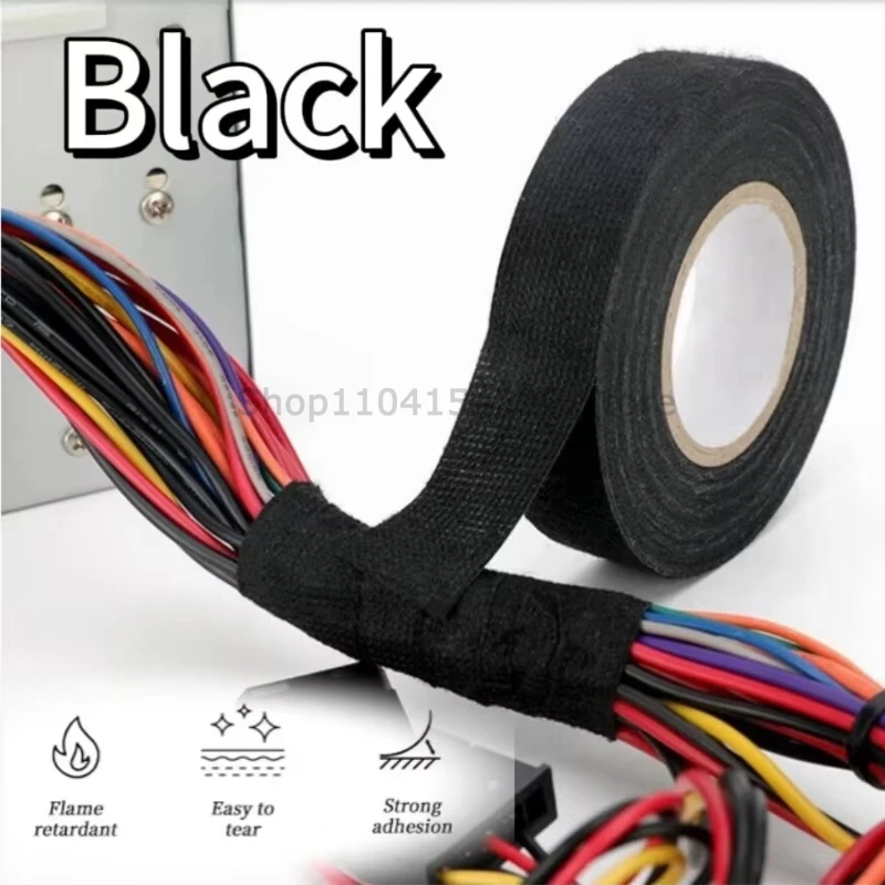 Cinta adhesiva de tela de 15 metros, resistente al calor, retardante de llama, arnés de cables de coche, telar de cableado, aislamiento, protección resistente al desgaste