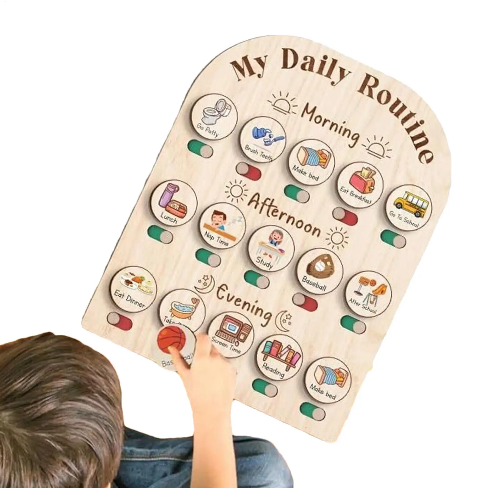 Tabla de rutina diaria para niños, gráficos de rutina para la hora de dormir de la mañana, juguetes educativos para niños pequeños, tableros planificadores de madera, suministros escolares de la mañana