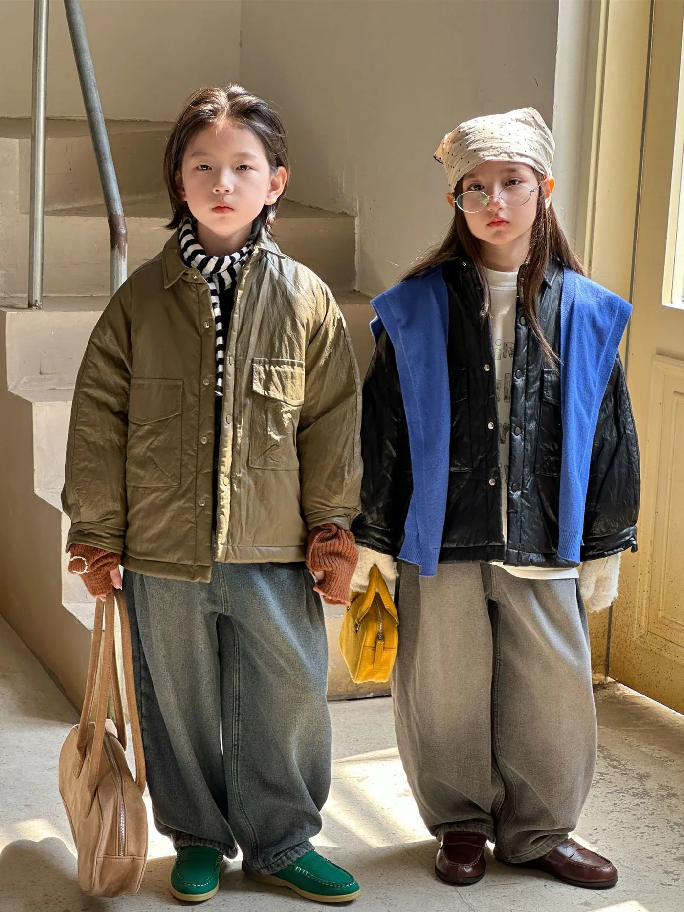 Chaqueta de Invierno para Niños, Estilo Coreano, de Cuero Sintético, Resistente al Viento, Cálida, para Niños y Niñas, Estilo...