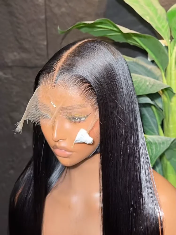 Pelucas frontales de encaje HD liso de hueso 13x6, cabello humano de 30 pulgadas, peluca Frontal de encaje Remy prearrancada transparente con pelo de bebé para mujeres