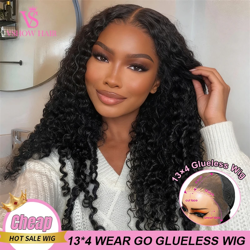 VSHOW Pelucas de Cabello Humano con Encaje Frontal HD Suizo 13x4, sin Pegamento, Precortadas, con Puntas Rizadas Birmanas y Estilo Finger Coil, Listas para Usar para Mujeres