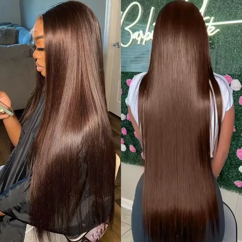 # Peluca de Cabello Humano Color Marrón Chocolate, Densidad 220, Lacia, 46 Pulgadas, 13X6 HD Lace Frontal, Pelucas de Cabello Humano para Mujer