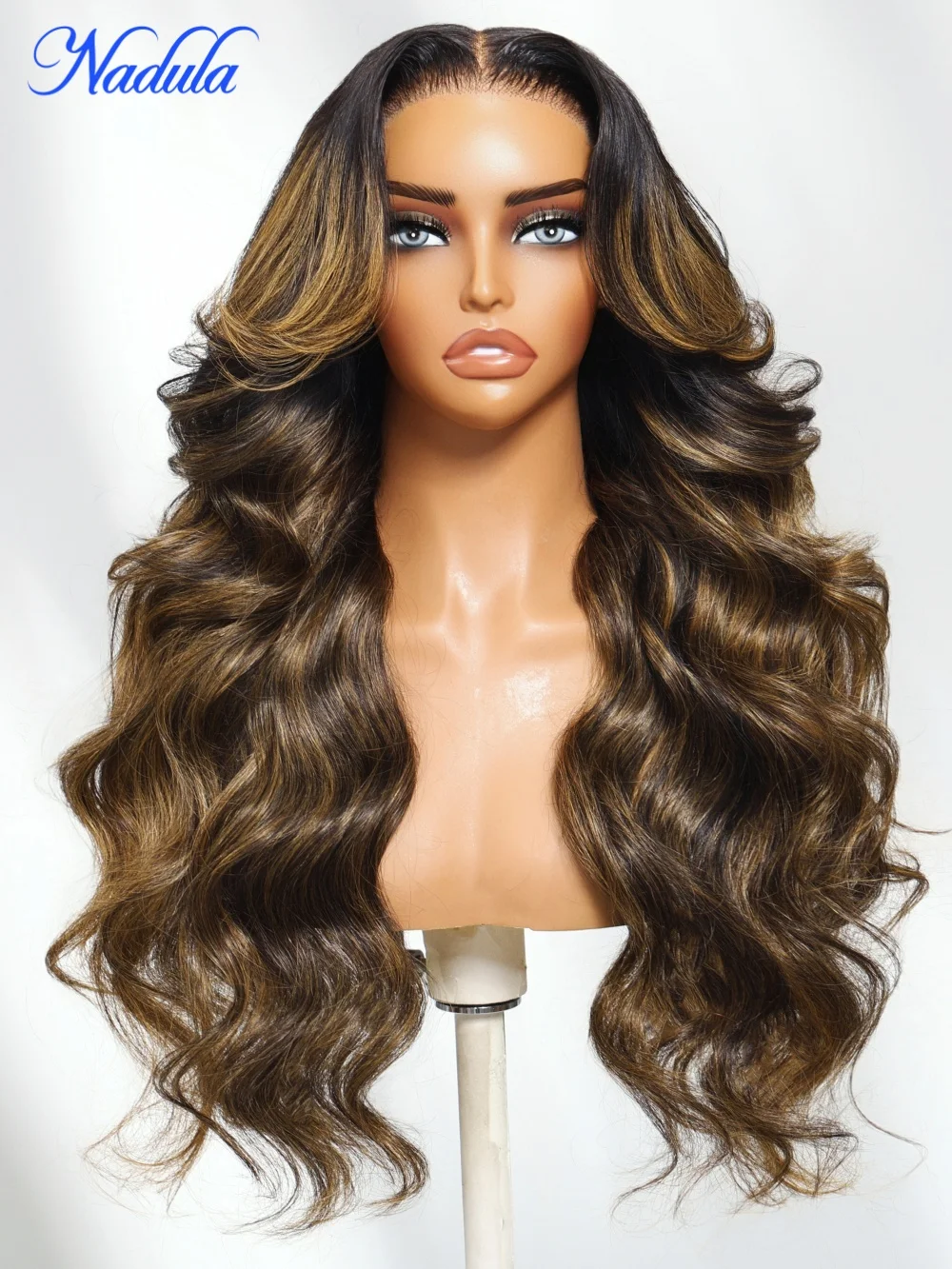 Nadula 7x5 Adiós Alcance Slip ™ Peluca sin pegamento de encaje Balayage resaltado onda suelta cordón cortina flequillo peluca pelucas de cabello humano sin pegamento