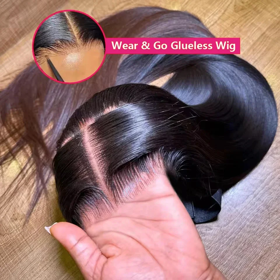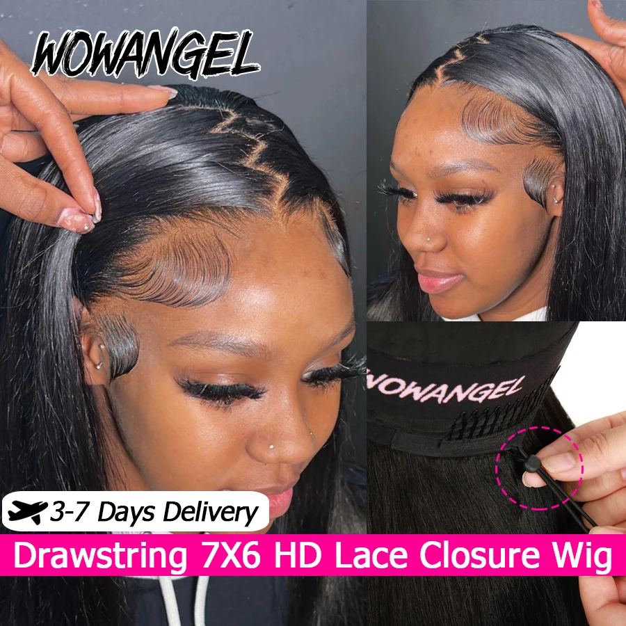 WOWANGEL Pelucas Lisas Sin Pegamento Pre-cortadas con Cordón Ajustable, Peluca con Cierre de Encaje HD 7x6, Nudos Decolorados, 100% Cabello Humano