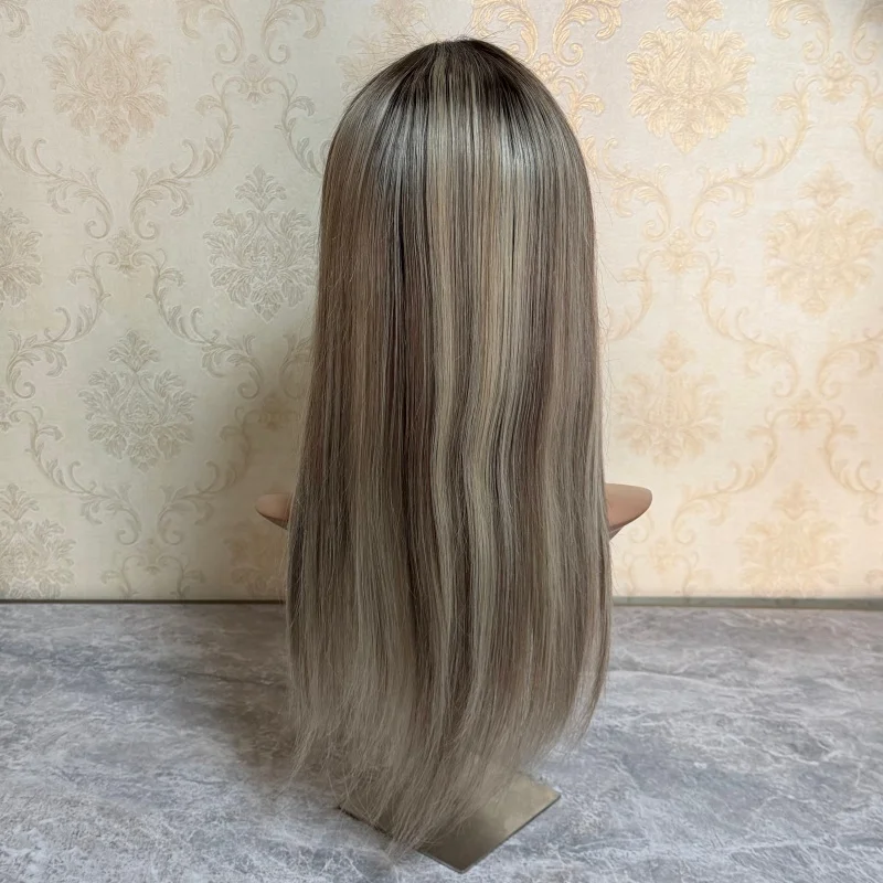 Stock Rubio ceniza resaltado color 13x4 pelucas delanteras de encaje para mujeres cabello humano recto 200 densidad DArk gris pelucas con cierre de encaje