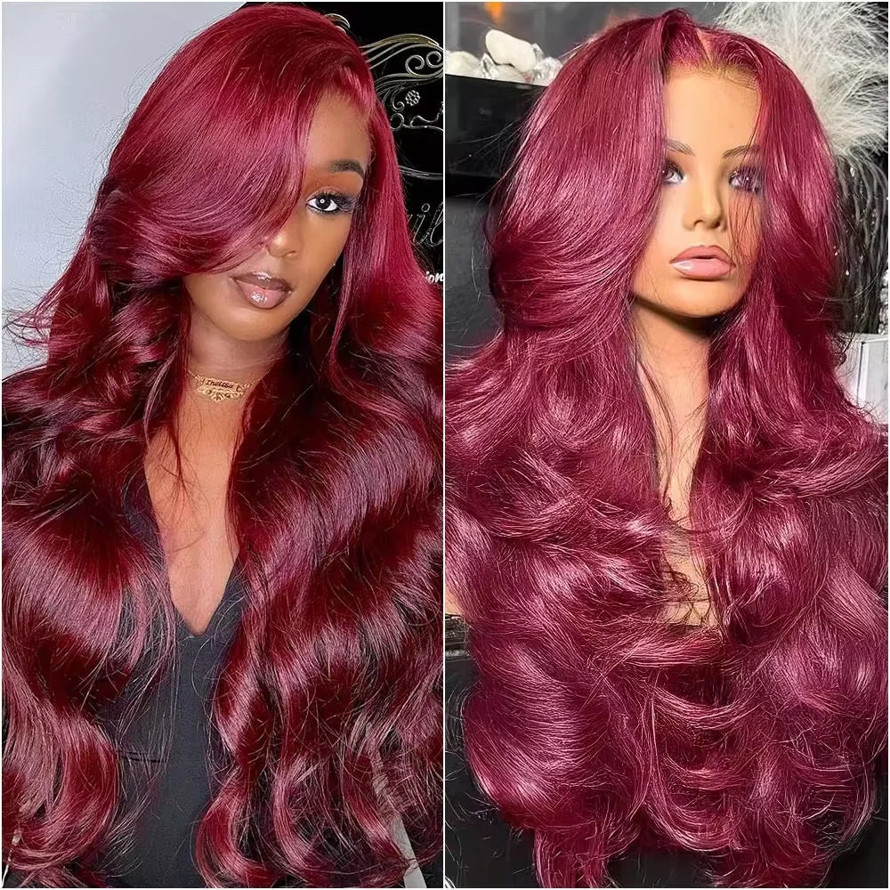 Borgoña Body Wave 36 46 pulgadas pelucas de cabello humano rojo para mujeres 99J color 13x4 13x6 HD peluca de cabello humano Frontal de encaje 220 de densidad
