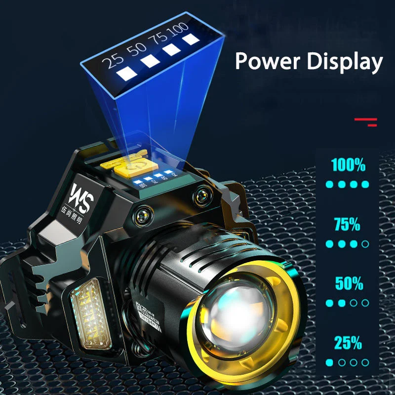 Linterna frontal LED Industrial con Sensor COB, linterna frontal recargable con batería integrada 18650, linterna para acampar y pescar al aire libre
