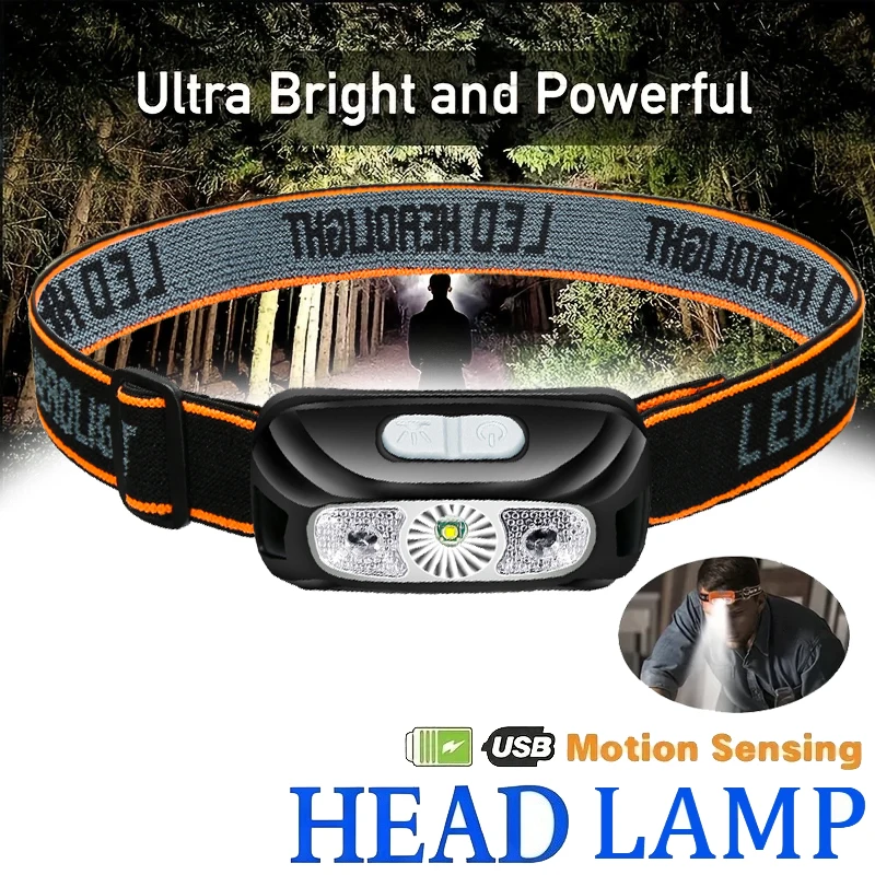 Linterna frontal de luz fuerte, Mini linterna Led para pesca nocturna, potente linterna frontal para exteriores, impermeable, para acampar, portátil, con Sensor LED