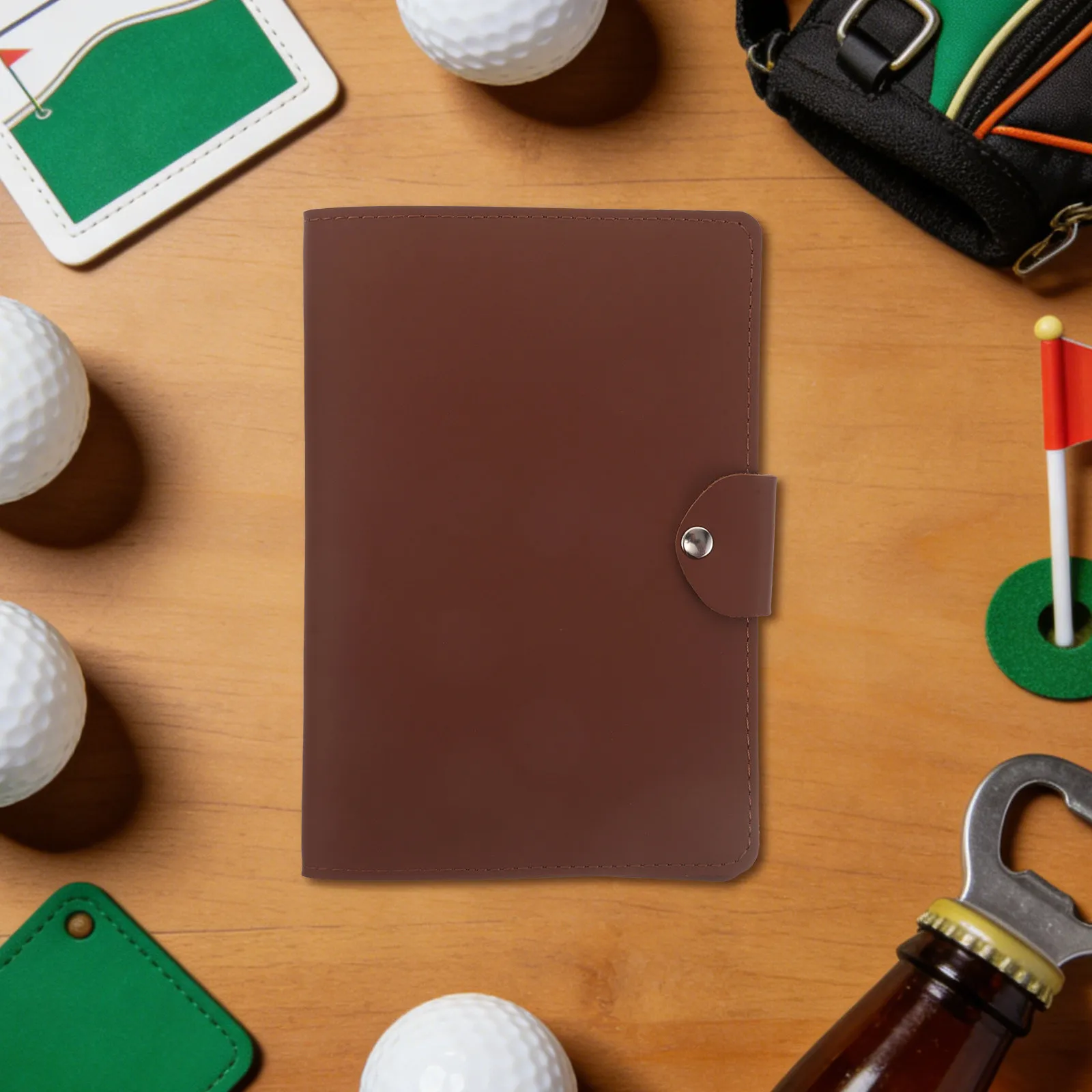 Porta Tarjetas de Puntuación de Golf de PU, Organizador de Cuaderno Portátil Marrón, Cubierta Rígida, Herramientas para Registrar Puntuaciones de Golf, Regalos para Golfistas