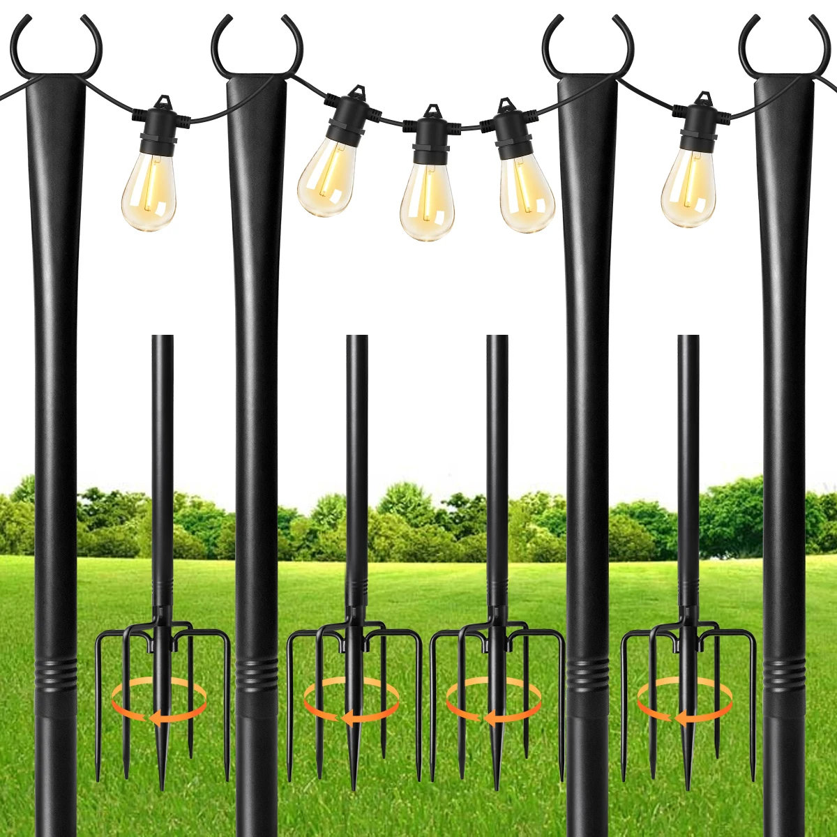 Paquete de 2/4/6 postes de luz de cadena, postes de luz de 10 pies para luces de cadena exteriores, poste de luces exteriores con horquilla, postes de Metal