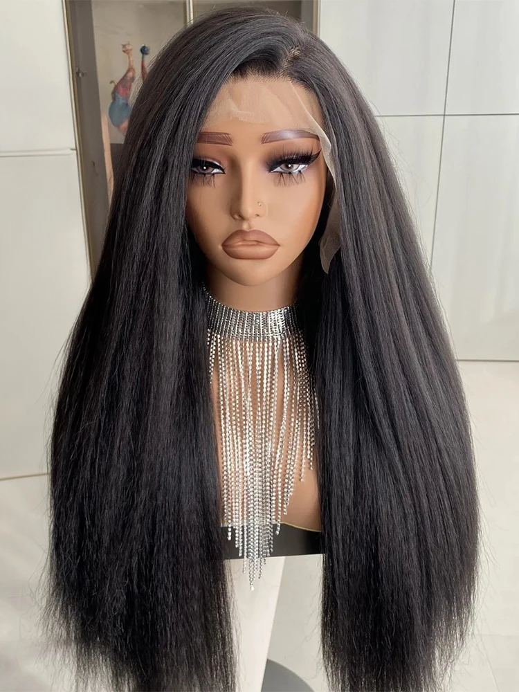 Pelucas de Cabello Humano con Frente de Encaje Completo, Densidad 250, Estilo Lacio Rizado, para Mujeres, Cabello Lacio Yaki, 100% Real, Peluca con Frente de Encaje HD Completo, Pre-arrancada