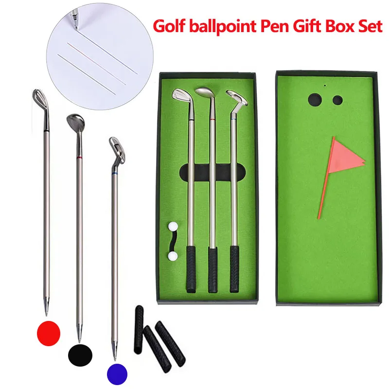 Mini bolígrafo Putter para palos de Golf, 3 palos de Golf, pelotas y bandera, decoración de mesa de juego de escritorio verde, regalo de Navidad y Golf