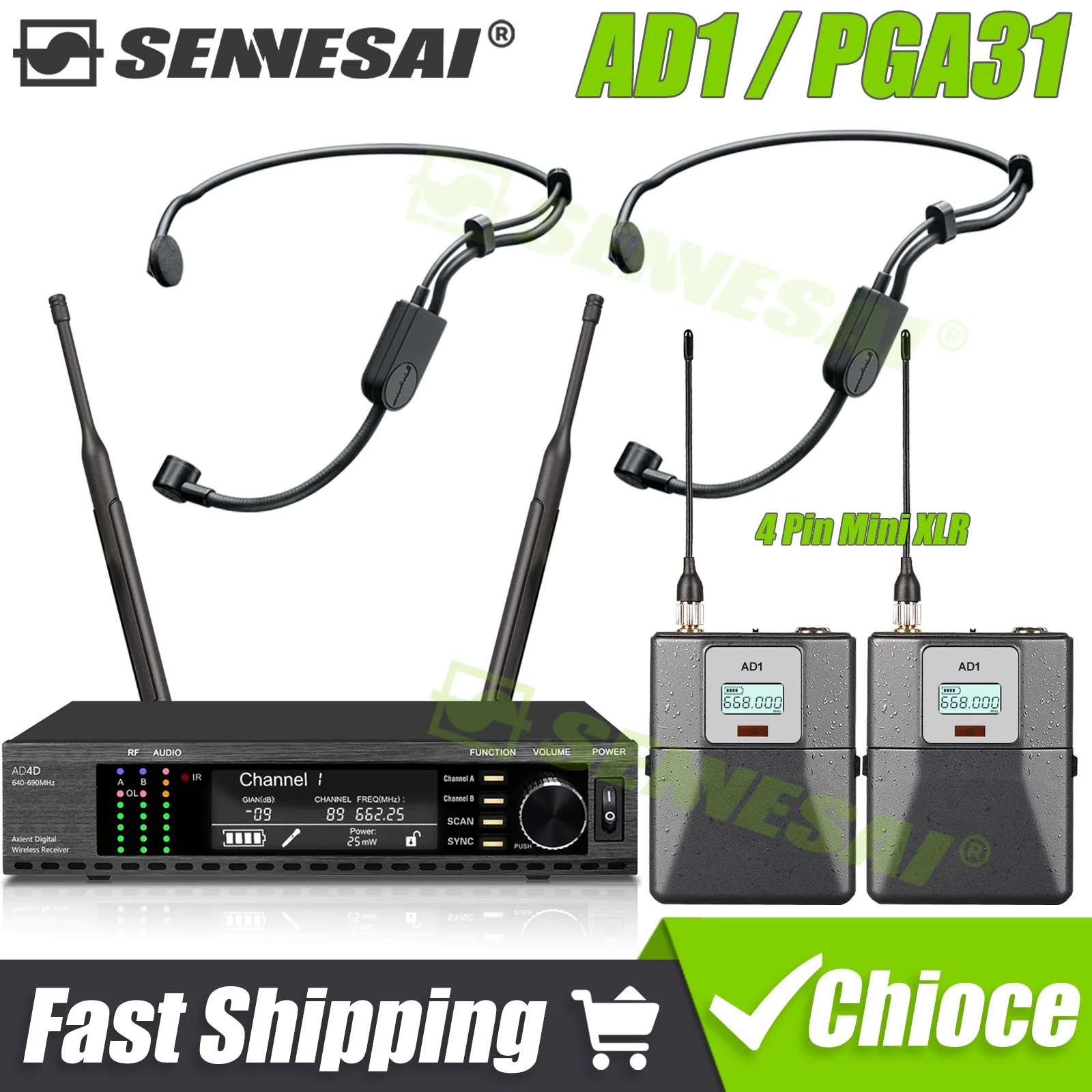Nuevo AD4D/AD1 PGA31 auriculares inalámbricos duales profesionales transmisor de micrófono de Metal, micrófono Lavalier de Radio de 150M para escenario 600MHz