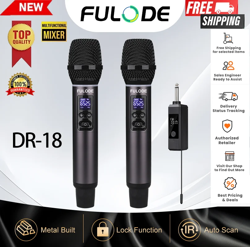 Micrófono inalámbrico FULUODE DR-18 Micrófono totalmente metálico Distancia de transmisión de 100 M Rendimientos y Karaoke