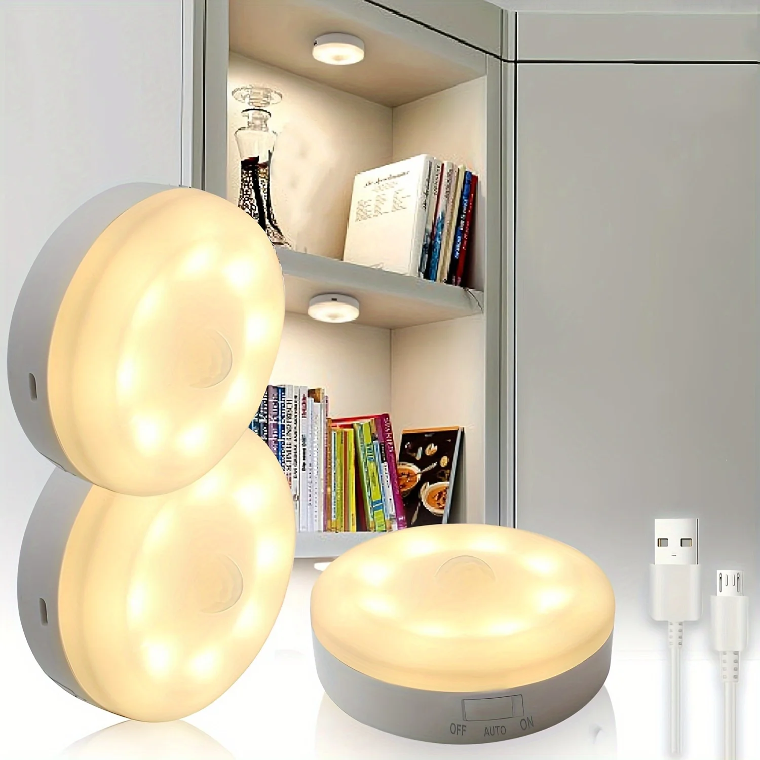 Luz Led con Sensor de movimiento, lámpara circular con carga USB para dormitorio, cocina, escalera, pasillo, armario, iluminación nocturna