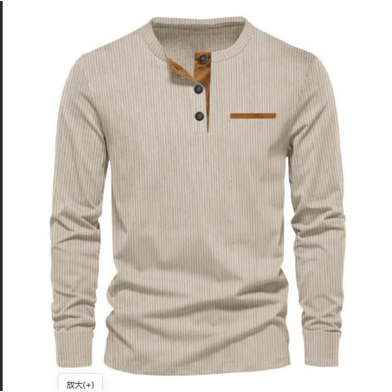 Camiseta de manga larga con cuello Henley de pana para hombre, estilo casual, ajustada, con botones, para uso diario.