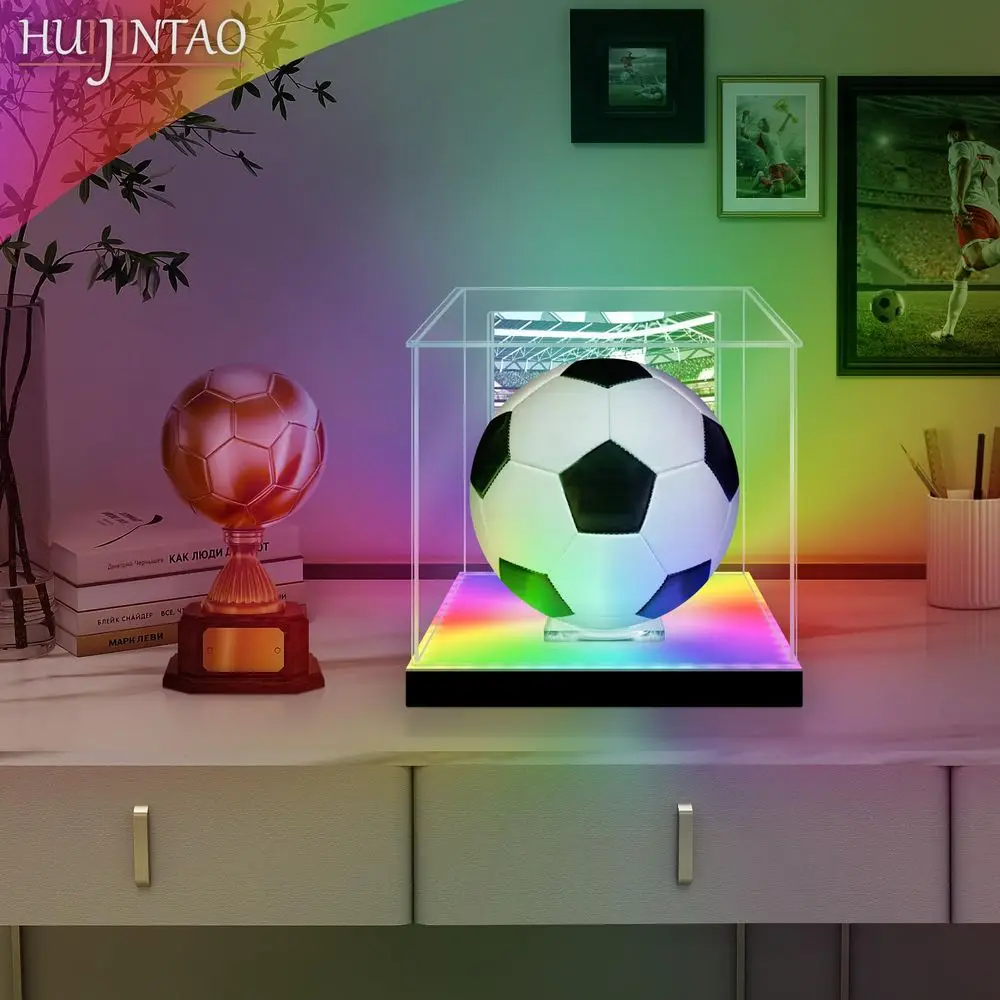 Vitrina para Balón de Fútbol con Luces LED RGBW, Caja de Acrílico Autoensamblable, Protección UV Antipolvo para Balón Autografiado, Completa con Soporte