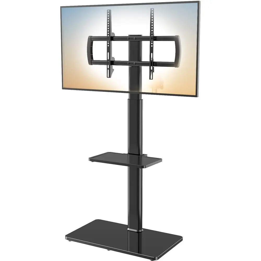 Soporte de TV para Piso con Montaje Giratorio de 80 Grados, Altura Ajustable y Diseño que Ahorra Espacio para la Mayoría de los Televisores LCD de 27 a 65 Pulgadas, OLED LED, 2 S