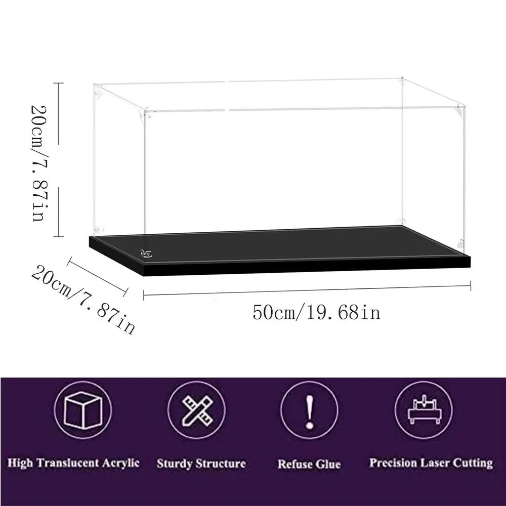 Vitrina de acrílico, vitrina para Lego, colecciones, caja de acrílico para el hogar, base negra, 50 x 20 x 20 cm