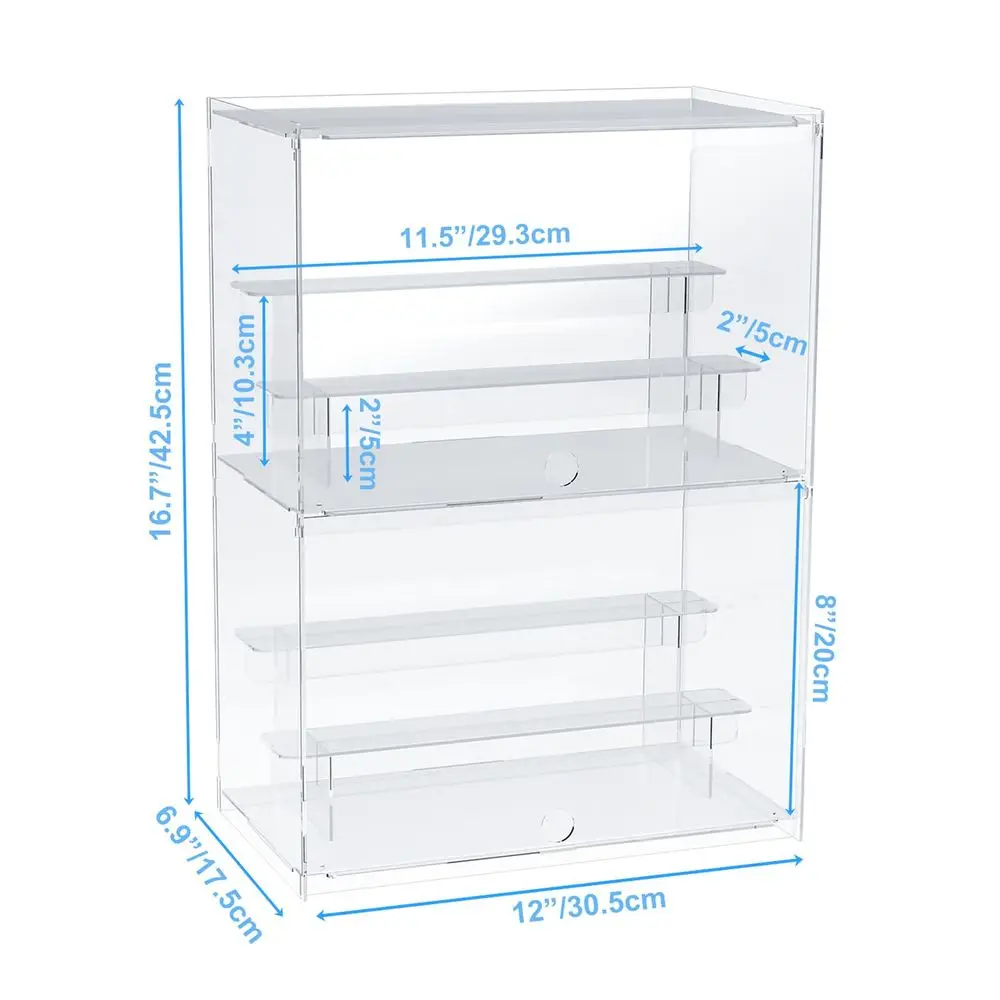 Vitrina para Colección, Exhibidor de 2 Niveles con Puerta y Estante, Caja Acrílica Transparente para Presentación
