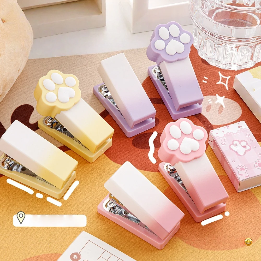 Mini grapadora de garra de gato con gradiente de macarrón para oficina de estudiantes, suministros de encuadernación portátiles, grapadora para aprender