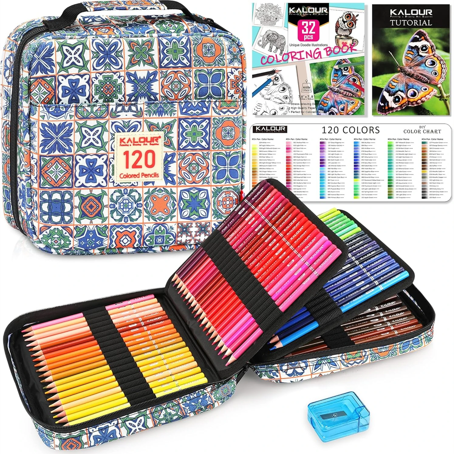 Lápices de colores KALOUR Premium para libro de colorear para adultos, 50/120 colores, con estuche para lápices con ranura para cremallera, núcleo suave, Ideal para capas