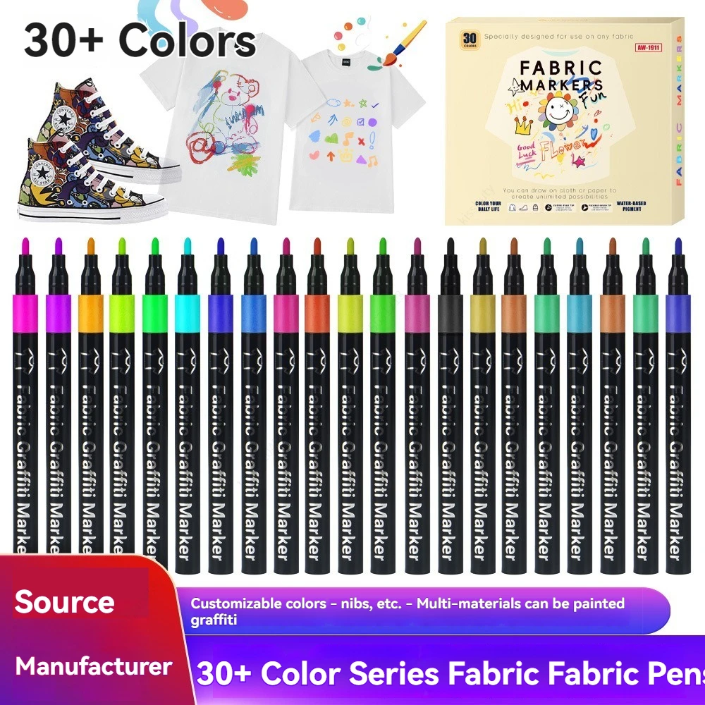 Juego de rotuladores de tela de 6/30 colores, pintura de tela Indelible y permanente, rotulador textil de punta fina, suministros de pintura artística