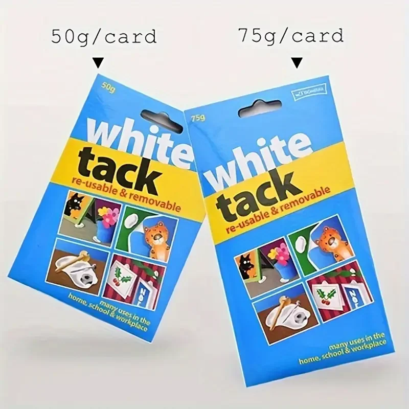 Masilla adhesiva reutilizable, tachuela blanca de 50g/75g, masilla adhesiva no tóxica extraíble para pared, masilla segura para carteles, marcos de fotos, fiesta