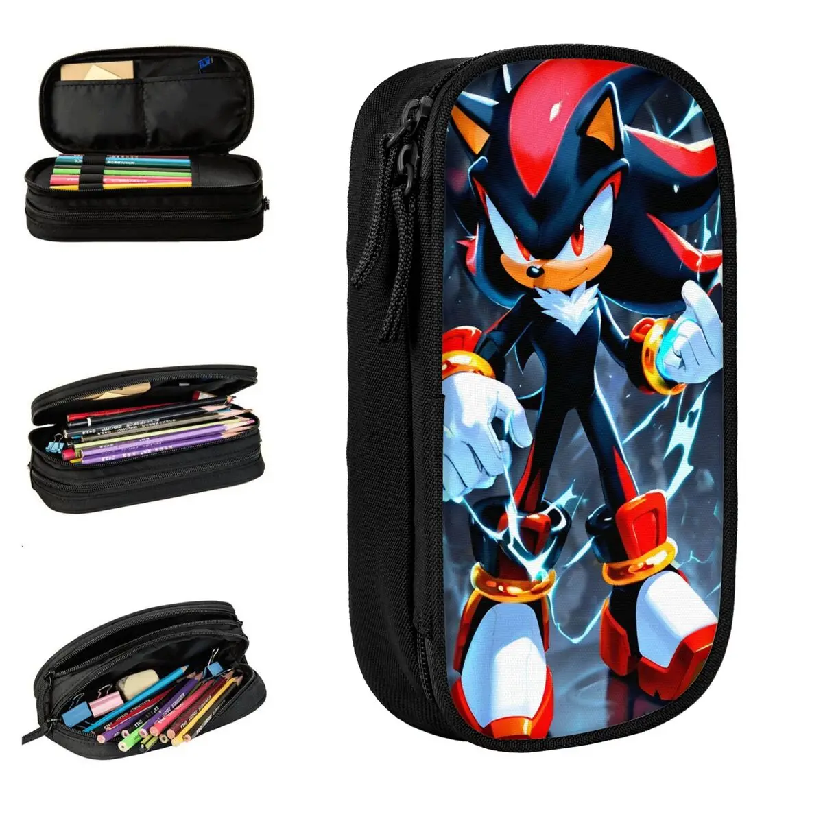 Estuche para lápices clásico Shadow The Hedgehog, estuches para bolígrafos para niñas y niños, bolsa de almacenamiento grande, papelería escolar con cremallera para estudiantes