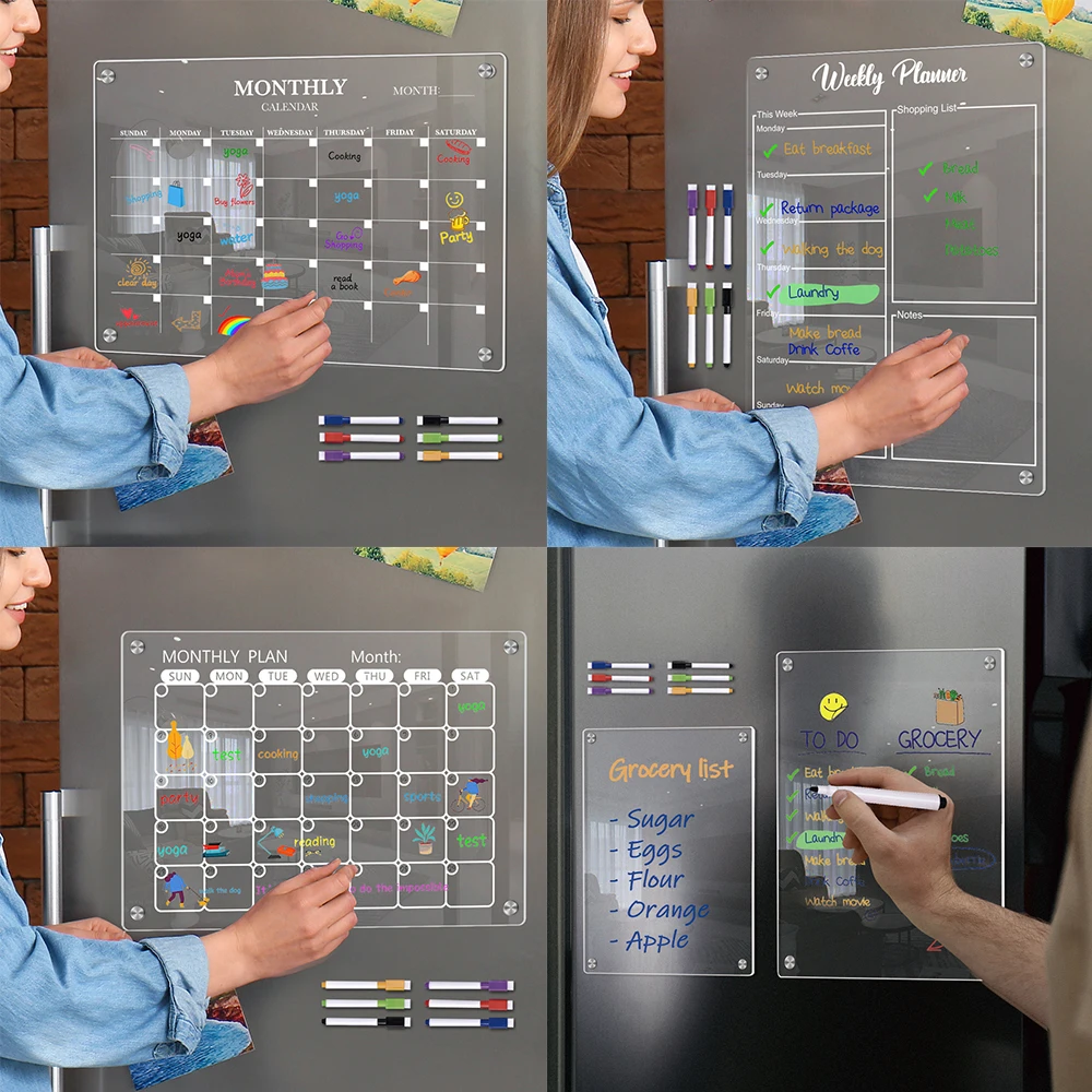 Pizarra Acrílica Magnética Transparente para Borrado en Seco, Calendario, Pizarra Blanca, Imán para Refrigerador, Planificador, Tablero Reutilizable para Notas y Avisos