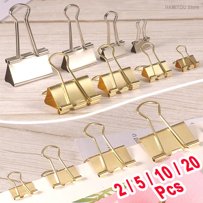 Carpetas de Metal de acero inoxidable, Clips de papel multifuncionales, sujeción fuerte para la escuela, oficina, suministros de papelería para el hogar, 6 uds.