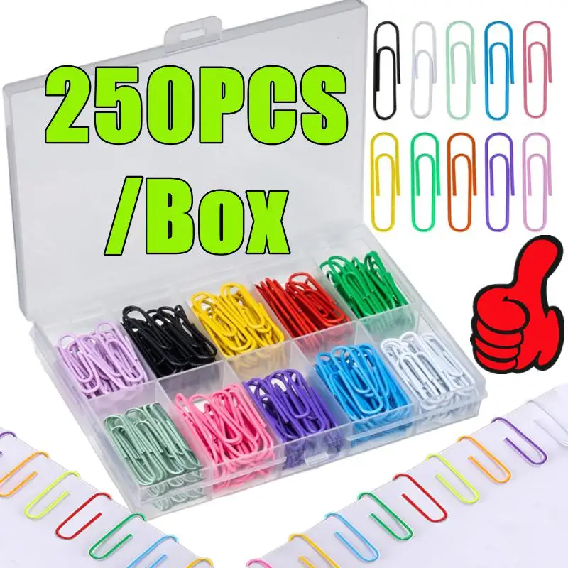 Nuevo 250 unids/caja Clip de papel de colores Clips de Metal Clip de notas marcapáginas Clips coloridos papelería accesorios de oficina suministros escolares