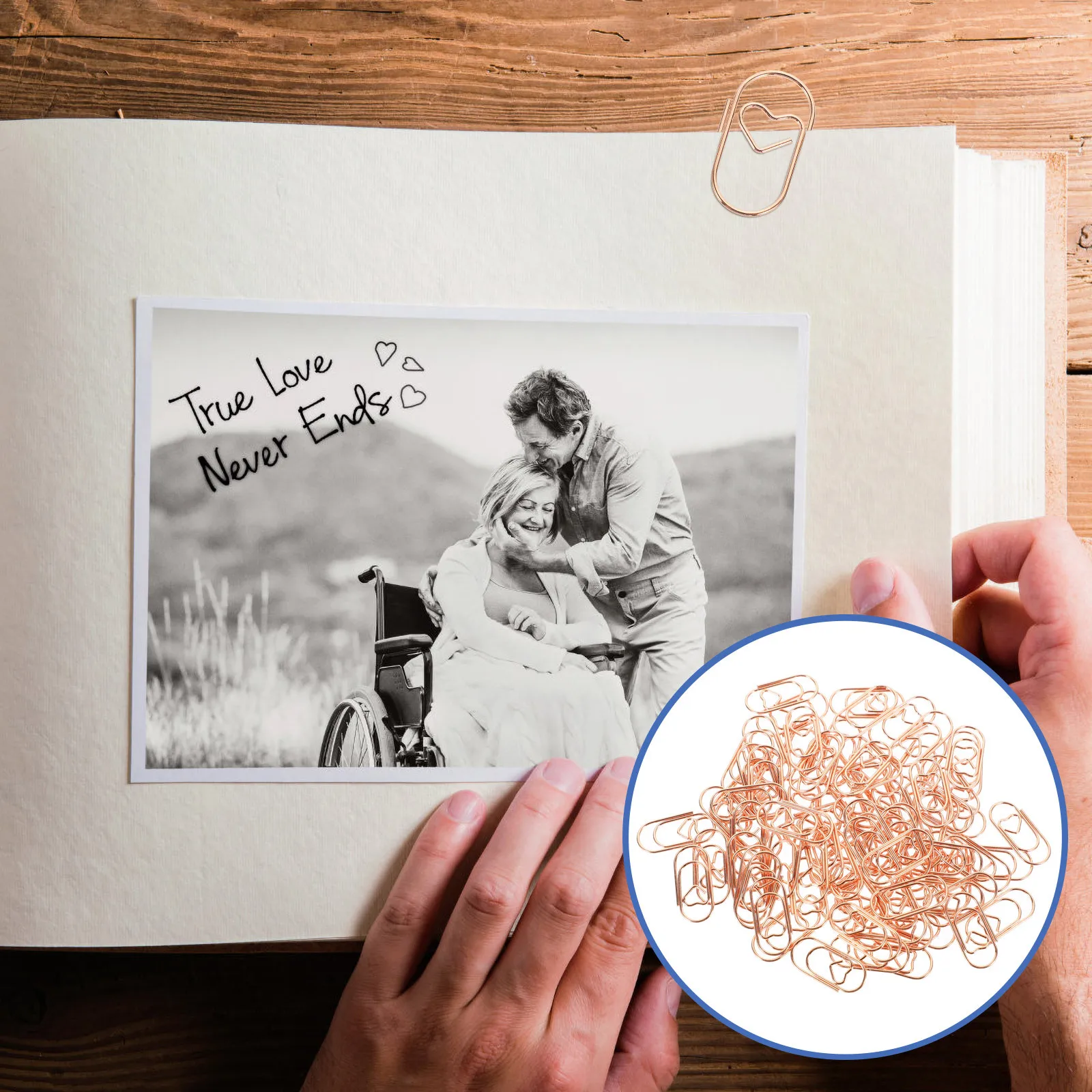 A75Q-300 piezas de Clips de papel bonitos de oro rosa, Mini Clips en forma de corazón, Clips marcapáginas para proveedor de oficina y escuela