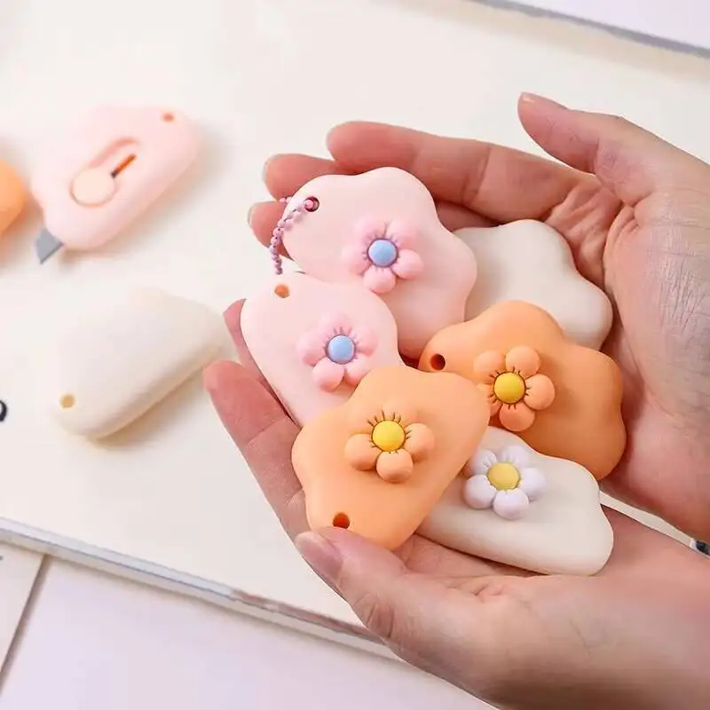 Cuchillo de Papel con Diseño de Nube y Flores Kawaii, Mini Cuchillo Multiusos para Manualidades, Corte de Papel, Envoltura, 1-2-3-6 Piezas