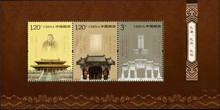 1 hoja de nuevo sello postal de China 2010-22, templo Confucio, mansión Confucio, sellos de hoja de recuerdo del bosque Confucio MNH