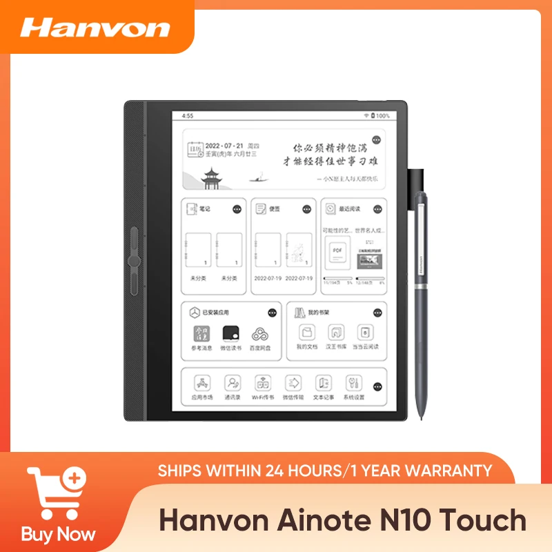 Hanvon N10 Touch Smart Office E Ink Tablet - Lector de libros electrónicos de 10,3" con soporte de escritura a mano y funcionalidad de cuaderno digital
