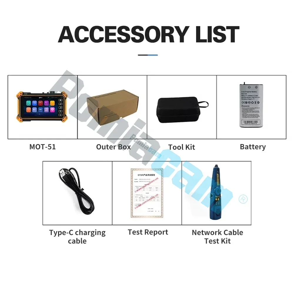Probador OTDR de MOT-51, pantalla táctil OLED de 5,55 pulgadas, OTDR OPM VFL, reflectómetro óptico de dominio de tiempo, Cable Utp, probador de fibra óptica de 4000mAh