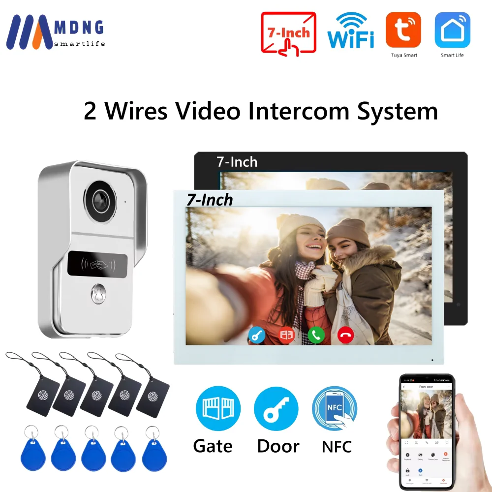 7 pulgadas Tuya Smart Home Video timbre sistema de intercomunicación inalámbrico Video puerta teléfono WIFI 1080P timbre cámara RFID contraseña desbloqueo