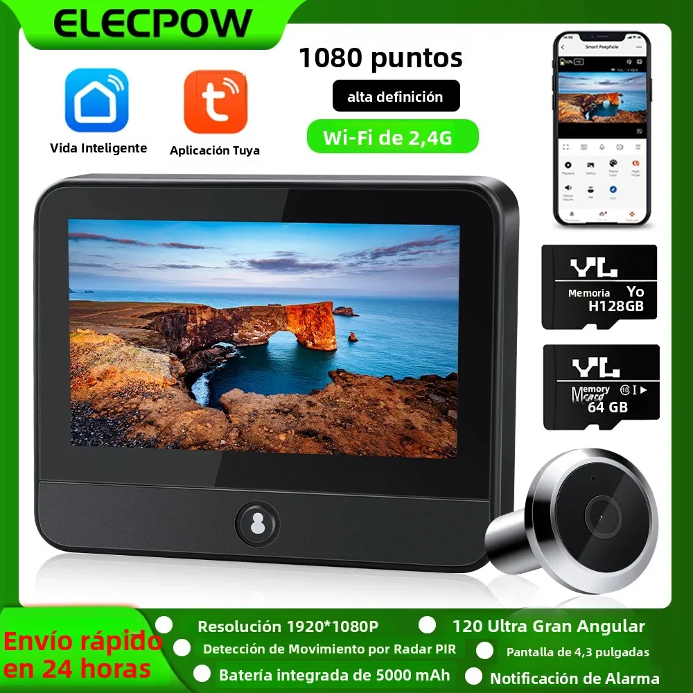 Elecpow Tuya wifi inteligente Radar puerta Digital Peepholes cámara ojo 4,3 pulgadas 1080P Video timbre PIR visión nocturna detección de movimiento
