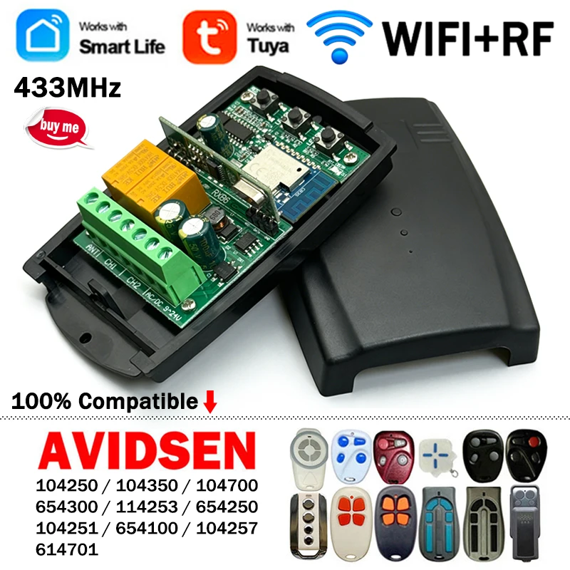 Módulo de interruptor inteligente Tuya universal de 433 MHz, receptor de control remoto WIFI para AVIDSEN 114253, 104250, 654300, 104251, 104700, 614701, etc.
