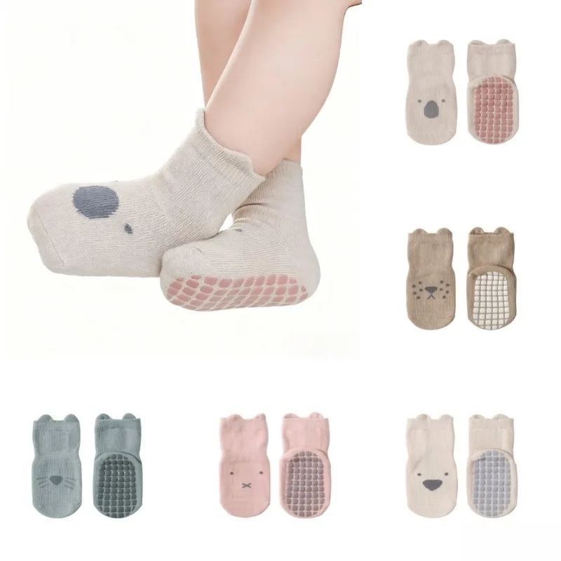 Calcetines antideslizantes para bebé con bonitos patrones de animales, calcetines suaves y transpirables de algodón para niños pequeños, calcetines infantiles con agarre para niños y niñas