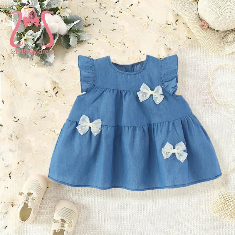 Vestido de verano para niña de 0 a 4 años, agradable arco, ropa Daliy para niños, ropa vaquera de imitación azul a la moda para recién nacidos, traje cómodo para chico