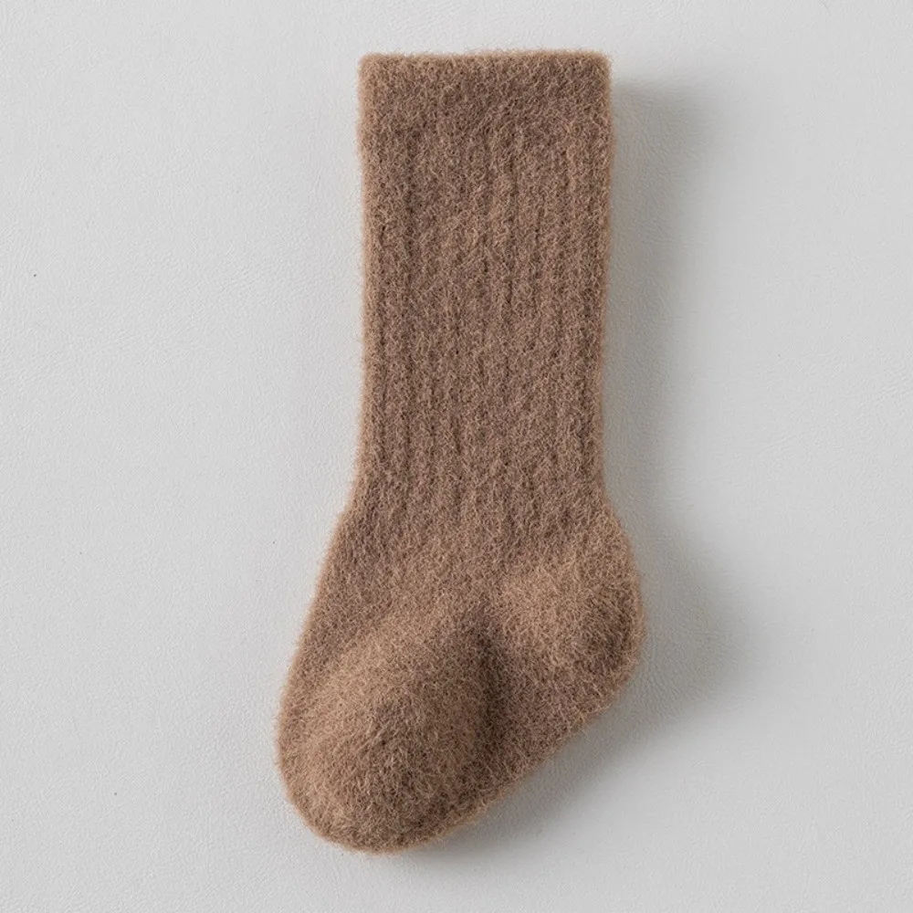 Nuevos calcetines de terciopelo Terry para bebé, calcetines gruesos y cálidos de Color sólido para suelo infantil, calcetines cómodos de punto de tubo medio para temporada fría