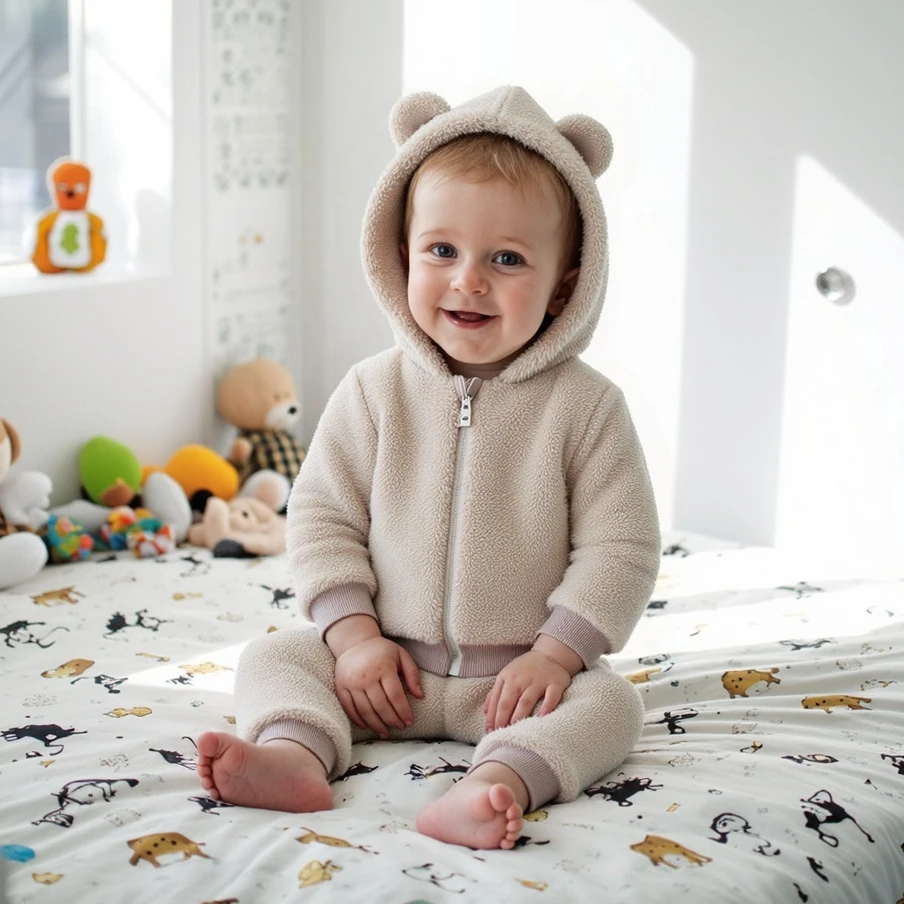 Pelele de franela suave para bebé recién nacido, pelele cálido de una pieza con capucha y cremallera de dibujos animados para niño pequeño, Otoño e Invierno